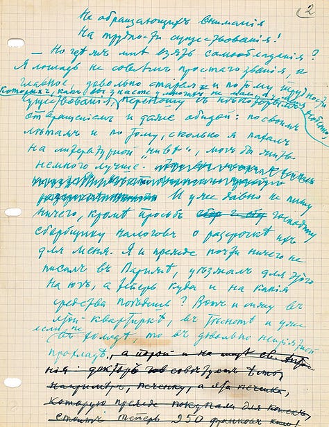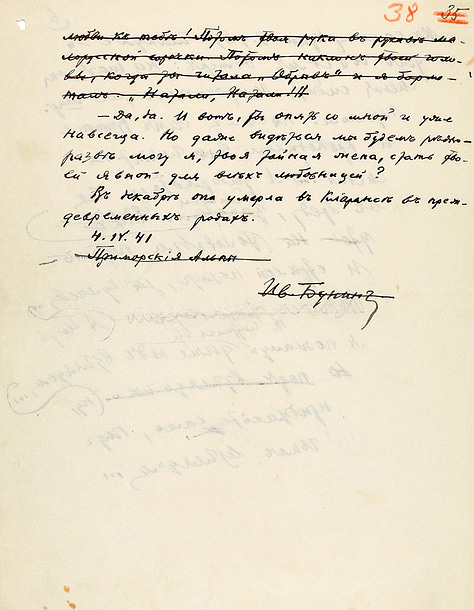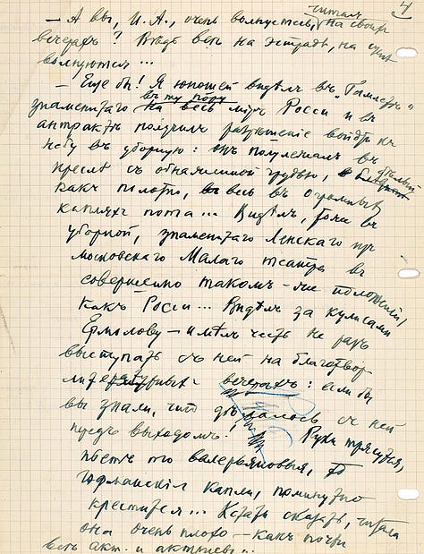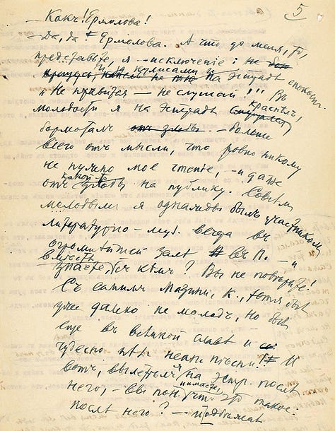 Os textos originais foram leiloados em 2021 pelo Litfond, com preço final de 5,5 milhões de rublos russos, algo em torno de 50 mil euros. Abaixo, algumas páginas do manuscrito de “Conversa com I. A. Bunin” e o original datilografado de trechos de contos da obra “Alamedas escuras”.