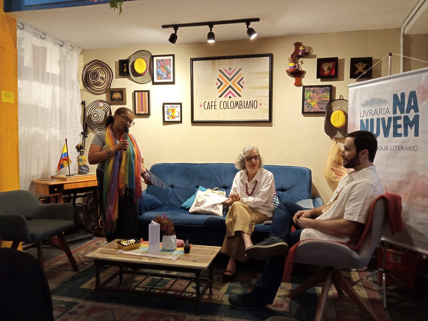 Lançamento presencial de “Rosa de Jericó e outros contos”, na Livraria Na Nuvem (Na foto: Renata, Rita Couto e Robson Ortlibas)