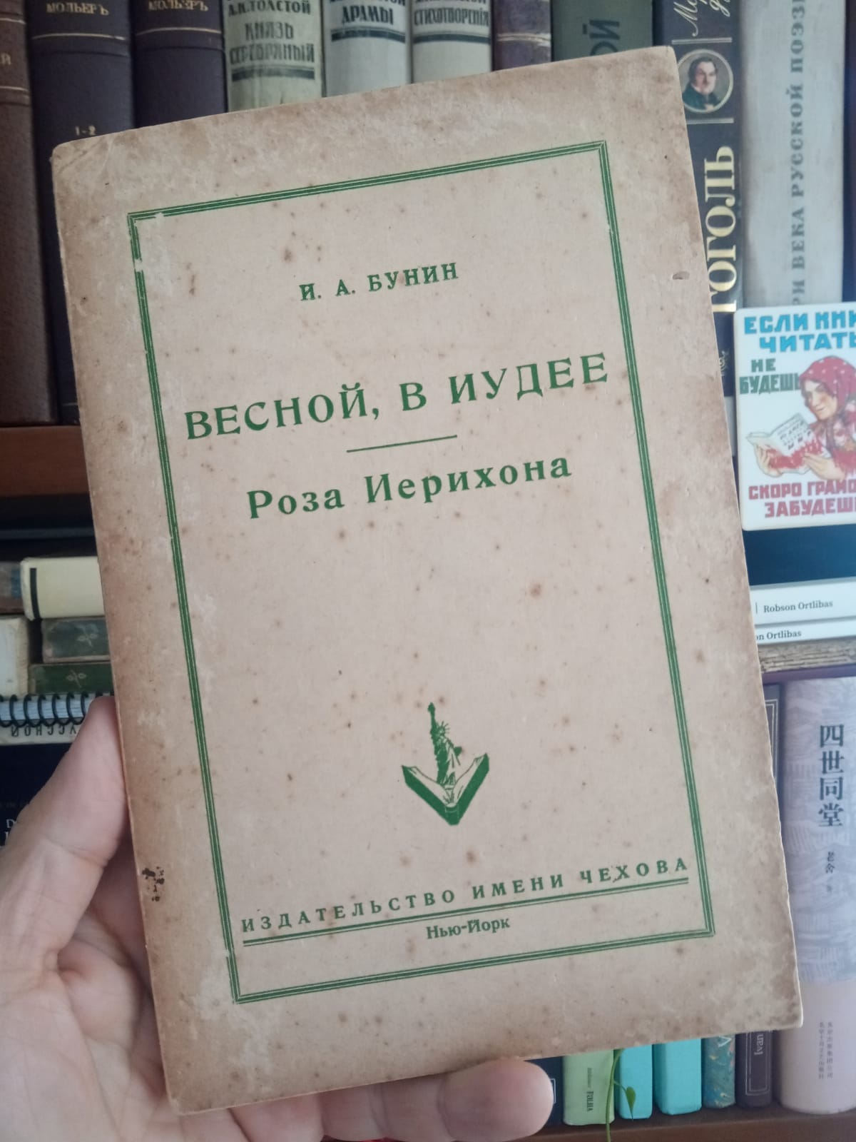 Ainda em 2014, formado recentemente em tradução e ainda traduzindo do russo apenas textos técnicos e projetos audiovisuais, ganhei de um amigo dezenas de livros em língua russa (o celtinha ficou lotado com livros). Entre as dezenas de livros, havia uma obra de Ivan Bunin. Neste caso era uma edição de “Primavera na Judeia / Rosa de Jericó”, publicado pela Editora Tchékhov, de Nova Iorque, em 1953. É uma publicação relativamente rara de uma coletânea de contos do Ivan Bunin, com uma biografia escrita pelo próprio autor, a pedido da editora. Devo dizer que não conhecia a obra de Ivan Bunin e sequer sabia de sua existência. No entanto, ao ler os primeiros contos, gostei quase que de imediato, em especial, dos contos “Respiração suave” e “Rosa de Jericó”; assim foi aumentando a admiração ao longo dos meses em que prosseguia com a leitura.